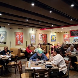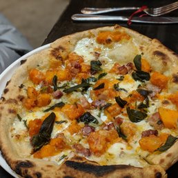 Really, I gave it one star in 2018? This experience was night-n-day different than that. We arrived with a reservation for eight. The manager, sorry I do not remember your name, advised us that it was not on the reservation list. Oops, it was busy in there! He said he would take care of us. He noticed we had brought some red wine to have with our meal and without asking, he opened up a bottle from the bar and poured us each a glass of wine without charge. Well that set the mood from disappointed to WOW. GREAT customer service. We were seated after a brief wait and the server, Adrian took care of us. We ordered Burrata, Cindy's Pollo salad and Calamari Fritti. All the appetizers were great but since there were eight of us, we only had a taste each. I wanted more. We also ordered an appetizer Pesto pizza with house ricotta + pistachio + lemon oil + basil. That was the star of the show. Great texture with a burst of flavors. The pesto wasn't overwhelming but shined through with the lemon and pistachio adding some contrast and flavor. Sorry I did not get a picture of it, it went really fast and I was hungry. Most of us ordered the fried chicken and it was great! The chicken was crunch and tender with great fried chicken flavor and complemented by the pancetta glaze. Who doesn't like a bacon like flavor on anything. The potato's that accompanied it were a nice flavor addition as it was smooth and flavorful with just the right amount of green onion. One in our party ordered a wrap and she loved it. I did not taste it but she was taking it home with her. Another member ordered the FUNGHI DI LIMONE Pizza and they loved it as well. I did not taste this either but they said they would order it again. We finished off with a dessert, I am sorry to say I do not remember the name of it. It was great flavor with chocolate, cream and nuts. I only was able to have one bite. Next time I will get my own. It was a great night, great atmosphere, great food and great service from Adrian and the manager.